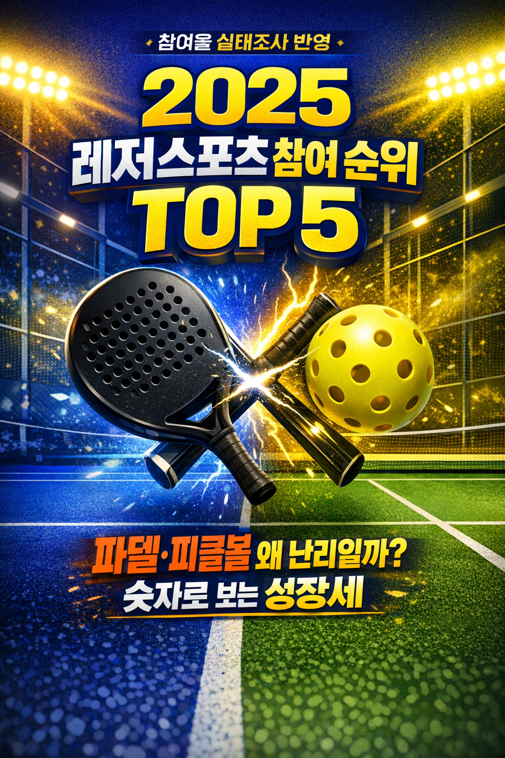 | 1. 2025 생활체육 참여율 순위 TOP 5 📊 | 2. 피클볼(Pickleball)의 폭발적 성장 🚀 |