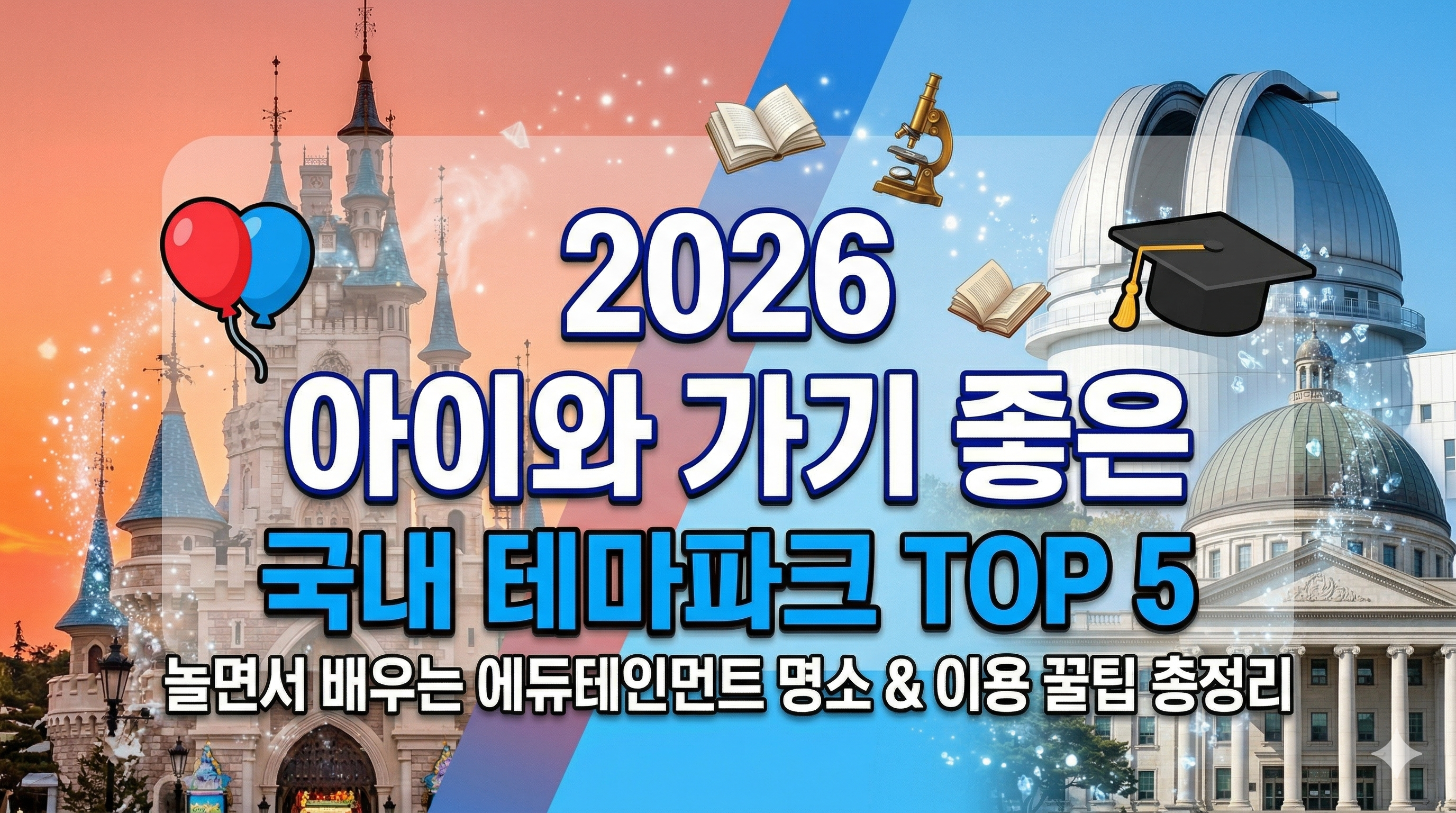 | 01. 아이들이 가장 사랑하는 테마파크 TOP 5 🎡 | 02. 놀면서 배우는 에듀테인먼트 명소 🎓 |
