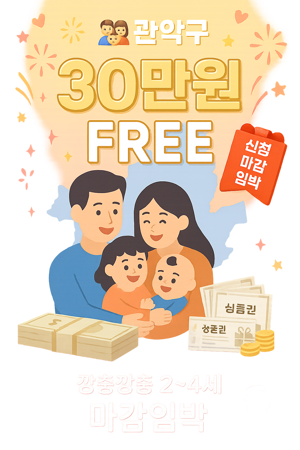 관악 엄마들! 30만원 육아지원금 놓치지 마세요! 2세~4세 영유아 관악 거주자 대상으로 관악사랑상품권 30만원 지급하는 깡충깡충 성장양육지원금! 지금 신청 안 하면 후회합니다!