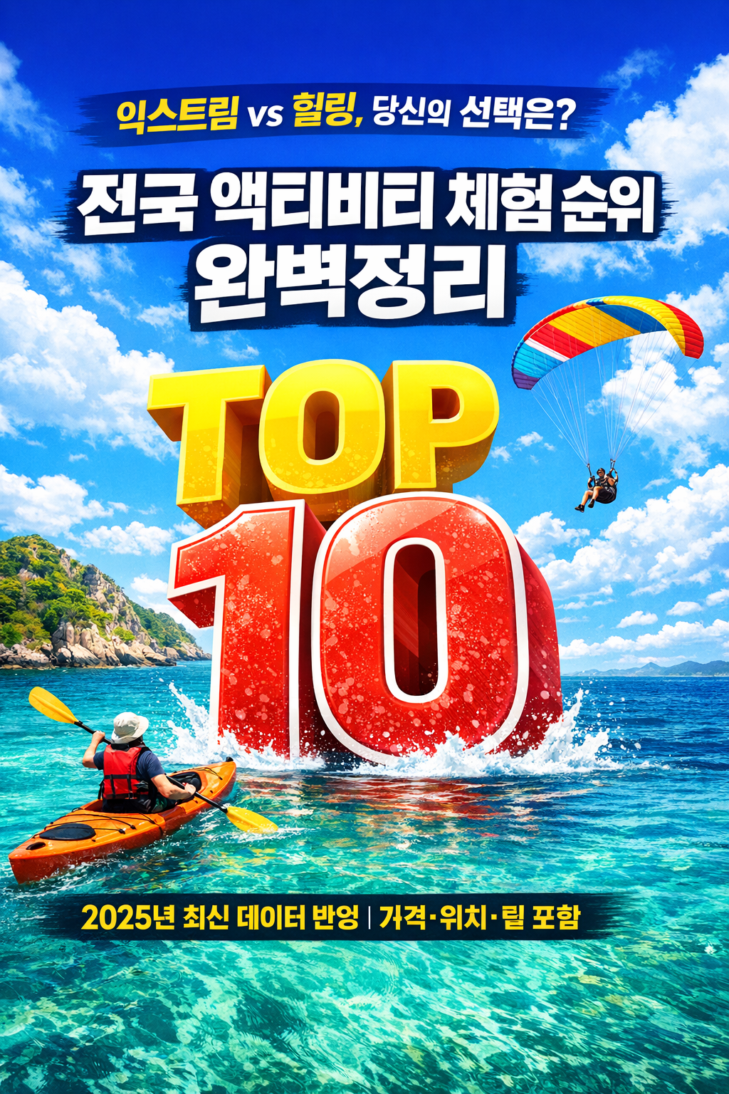 안녕하세요! 여러분의 여행 메이트입니다. 2025년이 밝으면서 여가 생활에 대한 갈증이 그 어느 때보다 높은데요. 단순한 관람을 넘어 몸소 체험하는 액티비티 시장 규모가 전년 대비 18% 성장했다는 사실, 알고 계셨나요? 오늘은 검색량, 예약률, 그리고 방문객 만족도 데이터를 종합하여 선정한 '액티비티 체험 순위 TOP 10'을 소개해 드릴게요! 🌊