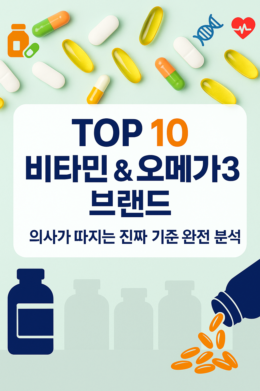 다만 “남들이 좋다니까” 아무 제품이나 고르는 것은 의사가 가장 말리는 방식입니다. 오늘 글에서는 전 세계적으로 많이 언급되는 비타민·오메가3 브랜드 TOP 10 예시와 함께, 의사가 실제로 어떤 기준으로 영양제를 평가하고 추천하는지 하나씩 카드뉴스 형식으로 정리해 드릴게요.