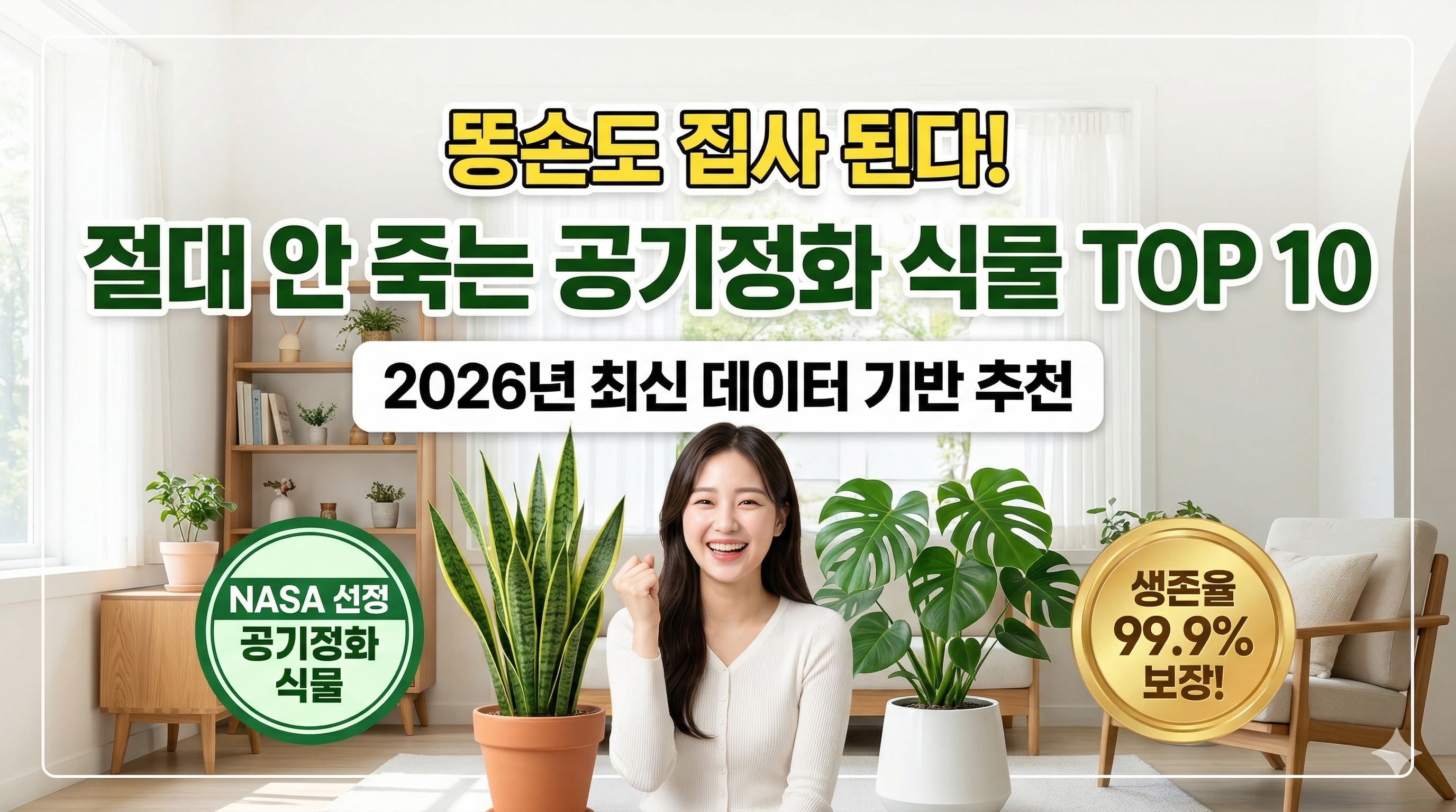 이번 포스팅에서는 NASA(미항공우주국)의 공기정화 연구 결과와 국립원예특작과학원의 생존 데이터를 바탕으로, 물을 좀 안 줘도, 햇빛이 좀 부족해도 "절대 죽지 않는" 무적의 식물 10종을 선정했습니다. 이제 여러분도 '초록 손'이 될 수 있습니다!
